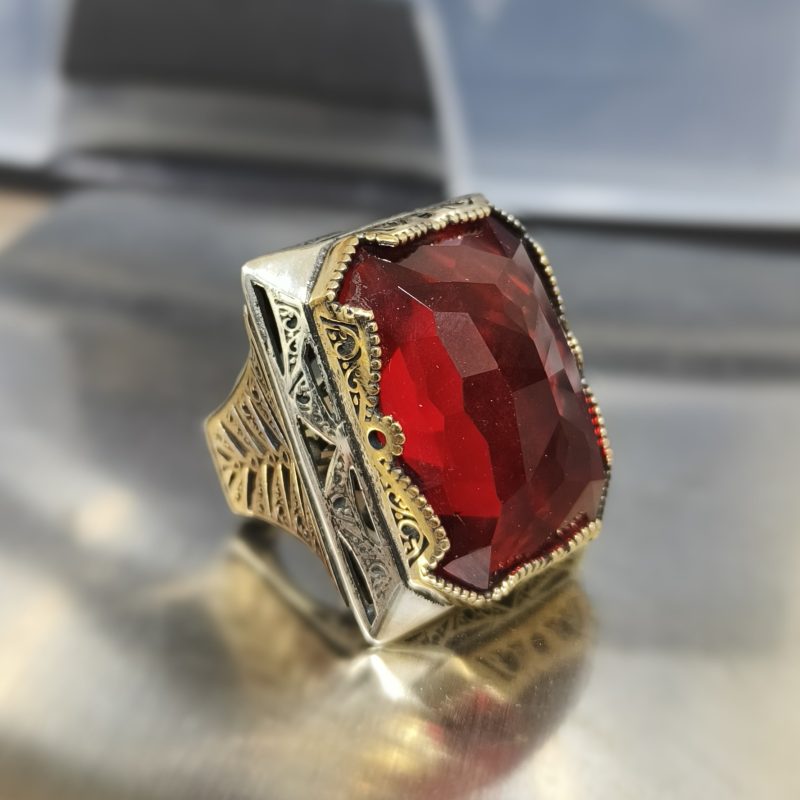 Kaplan Gözü Taşlı Kalem İşlemeli 925 Ayar Gümüş Yüzük