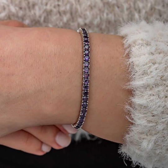 Mor Zirkon Taşlı Su Yolu Gümüş Kadın Bileklik