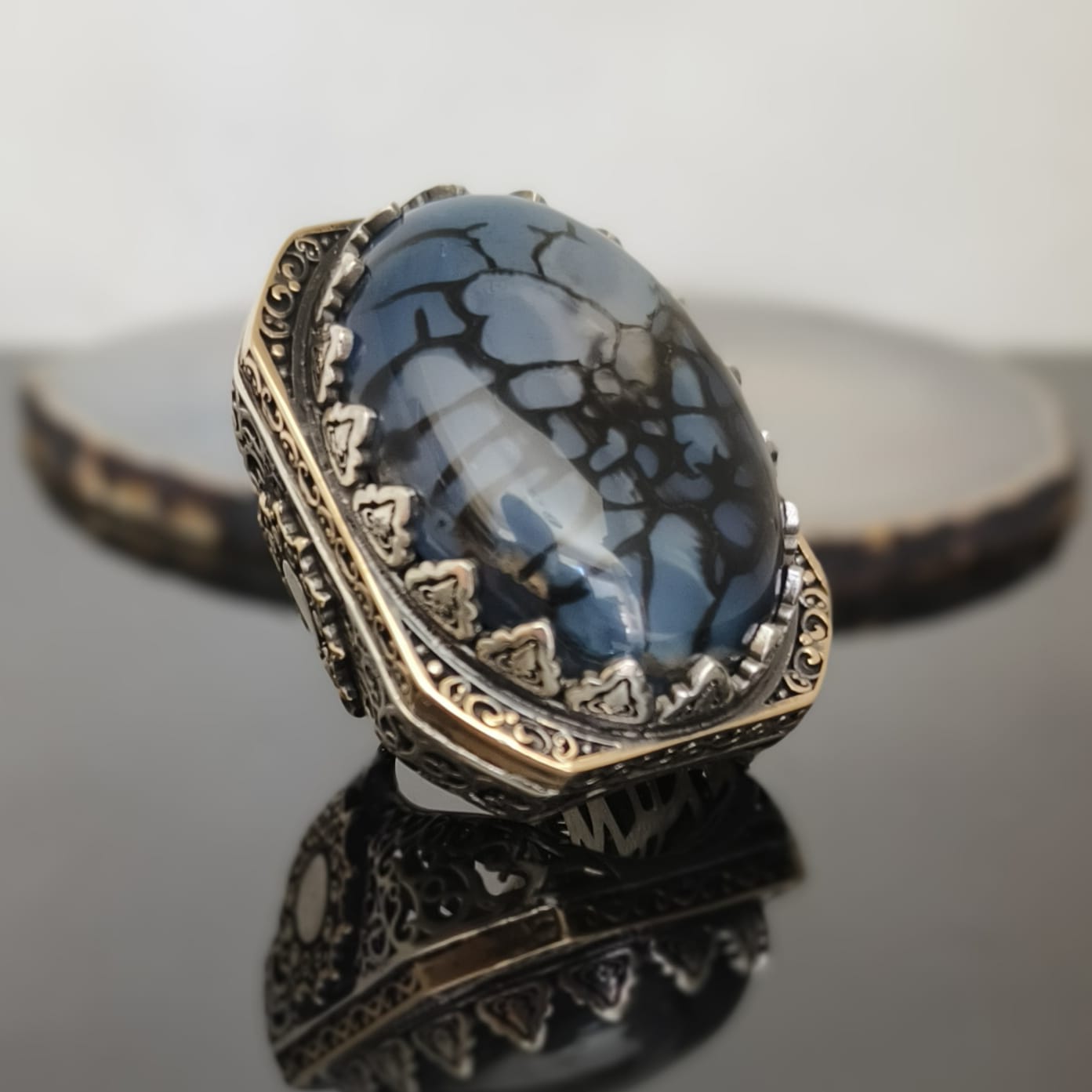 ÜRÜN HAKKINDA: Yemen Akik Taşlı 925 Ayar Gümüş Büyük Erkek Yüzük