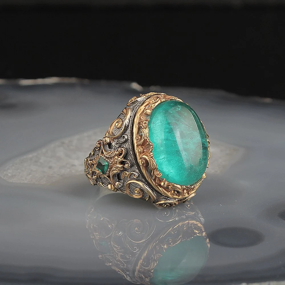 ÜRÜN HAKKINDA: Paraiba Taşlı Rodaj Kaplama 925 Ayar Gümüş Yüzük