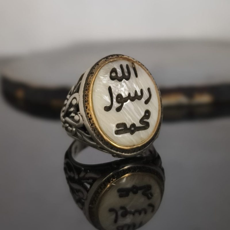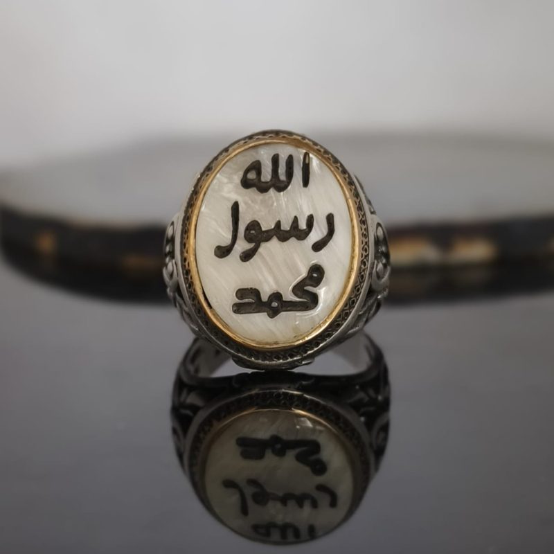 “İLÂHÎ ENTE MAKSÙDÎ VE RIDÀKE MATLÛBΔ Yazılı Mineli 925 Ayar Gümüş Erkek Yüzük